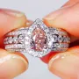 • Fancy Pink Pear Cut Halo Engagement Ring in 925 Sterling Silver