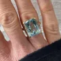 • Bague de fiançailles solitaire en argent jaune et or avec aigue-marine taillée en coussin