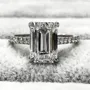 • Bague de fiançailles classique en argent sterling 925 et diamant taille émeraude