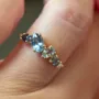 Bague de fiançailles en argent et or jaune avec aigue-marine bleue de taille ovale