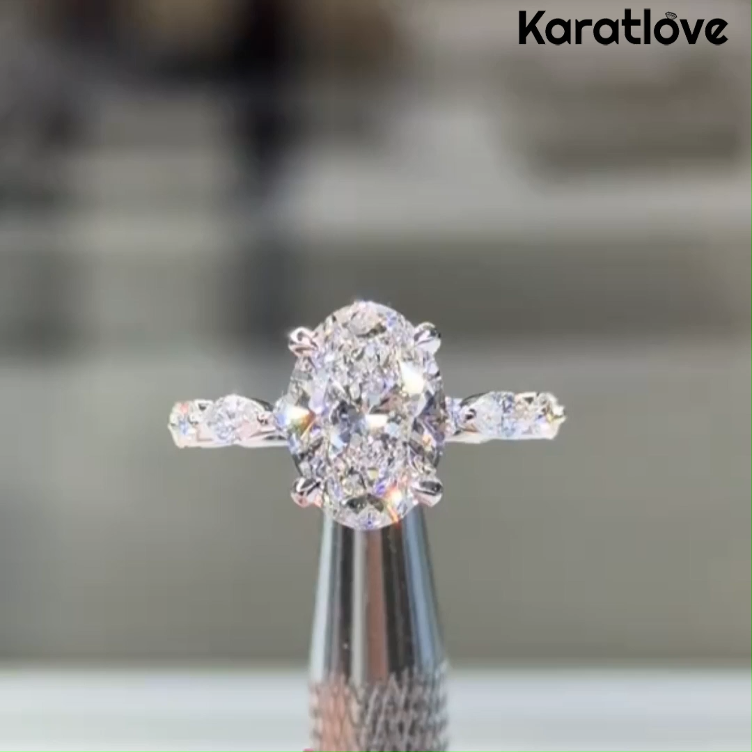 Bague de fiançailles en argent sterling blanc avec diamant taillé en ovale et halo caché