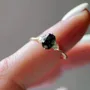 • Bague de fiançailles 3 pierres en argent sterling et or jaune avec émeraude verte de taille ovale