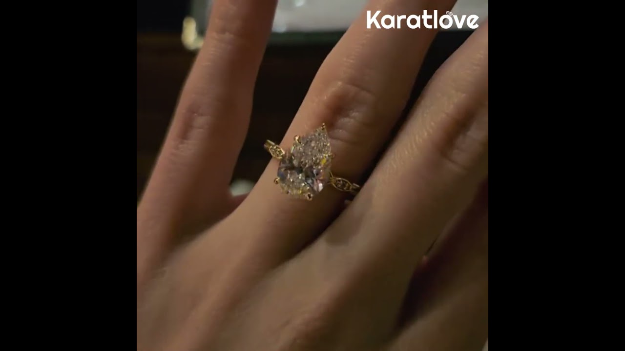 Bague de fiançailles classique en diamant taillé en poire en argent sterling blanc et or jaune
