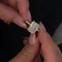 • Bague de fiançailles à double halo caché en argent sterling 925 or jaune et diamant radiant