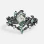 • Hexagonal Cut Green Moss Agate Nature Inspired Black Sterling Silver Bridal Ring Set