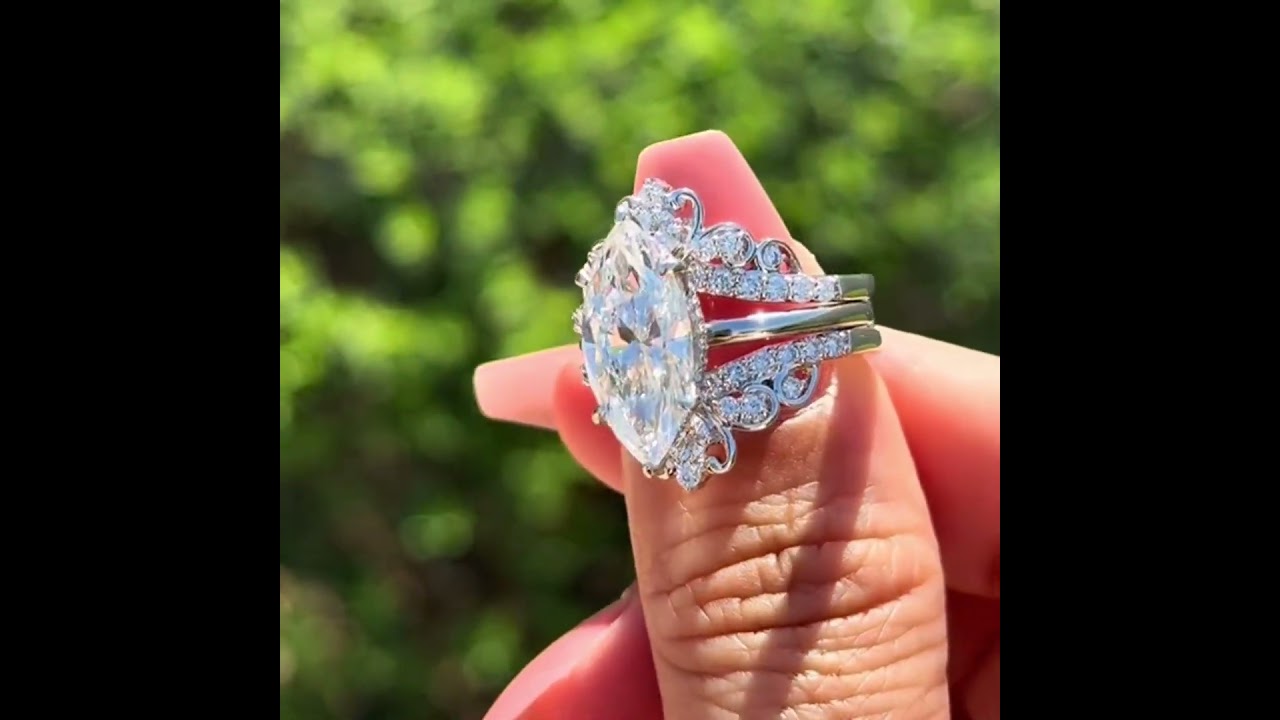 Marquise Cut Diamond White 925 Sterling Silver Hidden Halo Jacket Ring