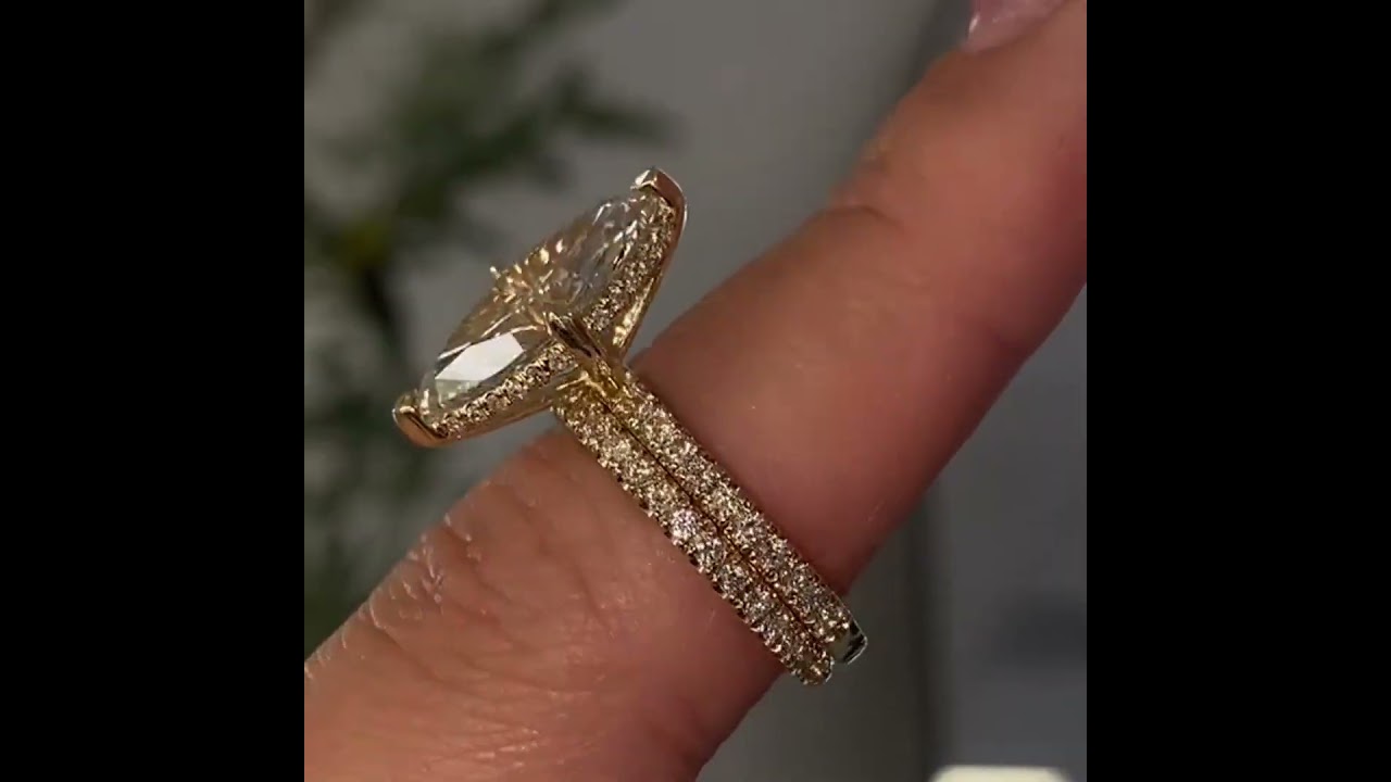 Marquise Cut Diamond White 925 Sterling Silver Yellow Gold Hidden Halo Wedding Ring Set