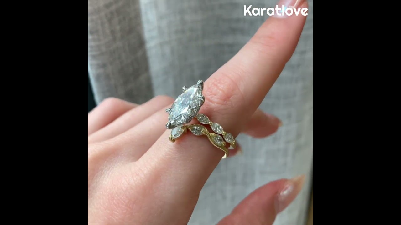 Marquise Cut Diamond White Sterling Silver Yellow Gold Art Deco Bridal Ring Sets
