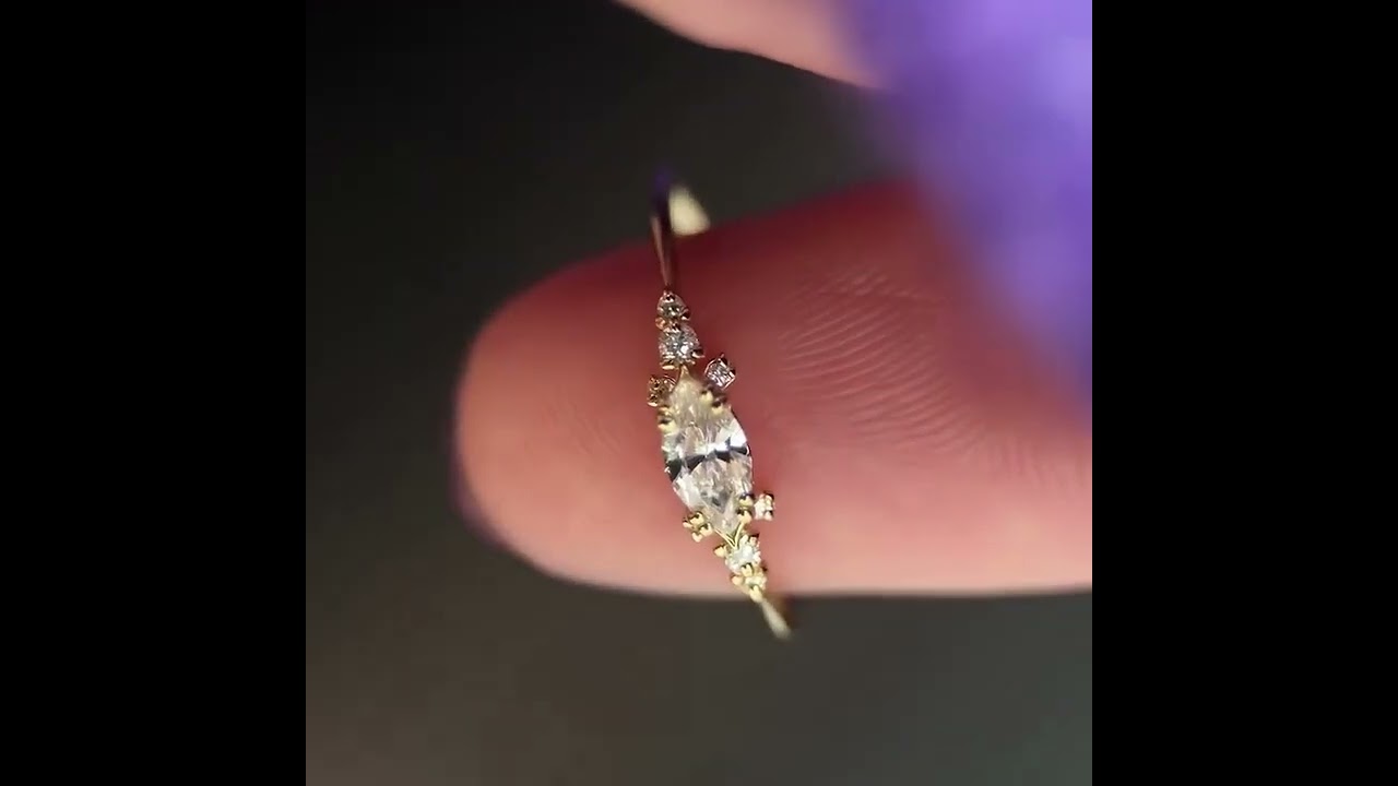 Marquise Cut Diamond White Sterling Silver Yellow Gold Engagement Ring