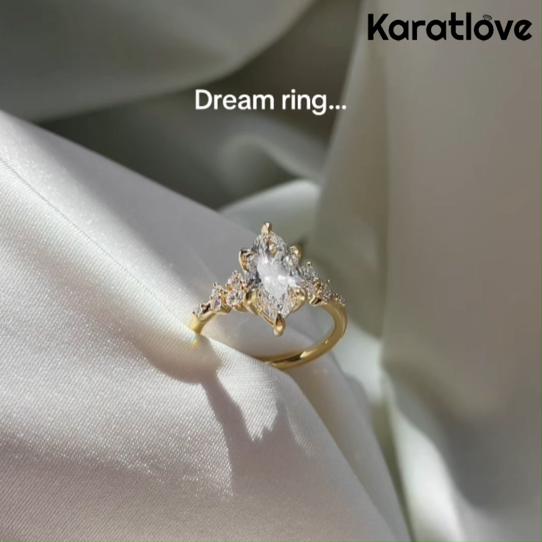 Marquise Cut Diamond White Sterling Silver Yellow Gold Engagement Ring
