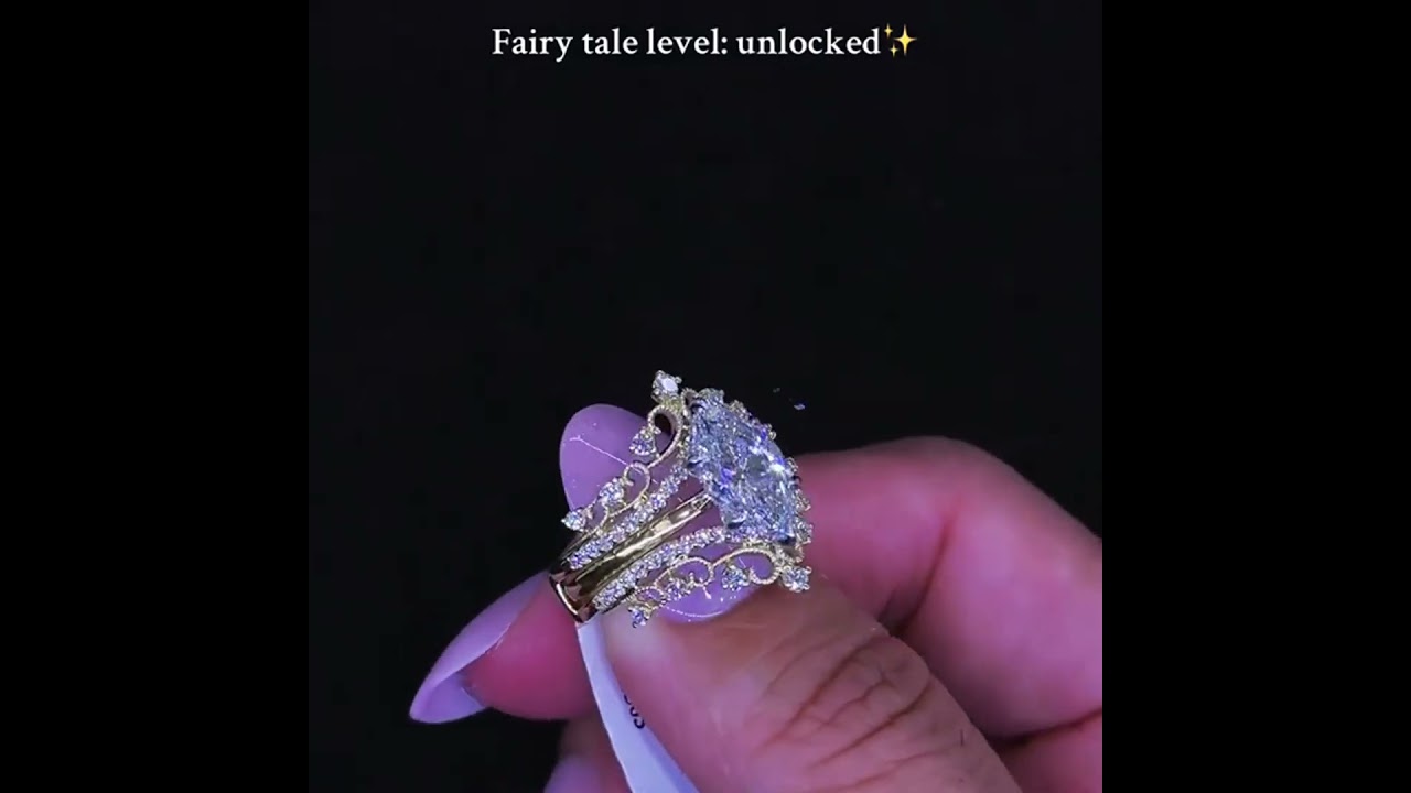 Marquise Cut Diamond White Yellow Gold Sterling Silver Insert Wedding Ring Set