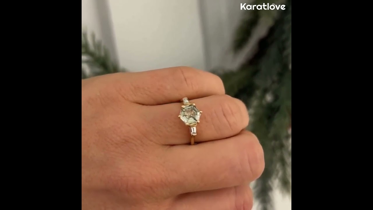 Hexagon Cut Peridot Groen 925 Sterling Zilver Geel Goud 3-Stone Verlovingsring
