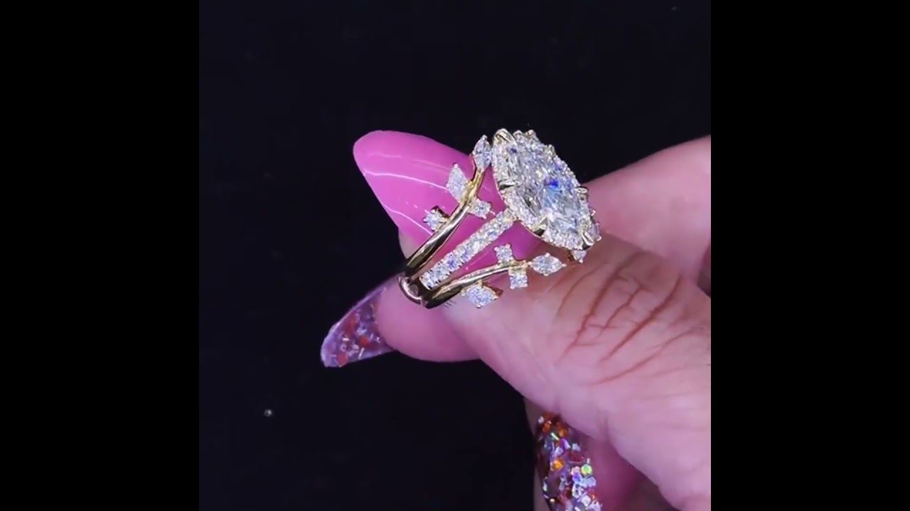 Marquise geslepen diamant witte 925 sterling zilveren gele gouden halo jacker ring