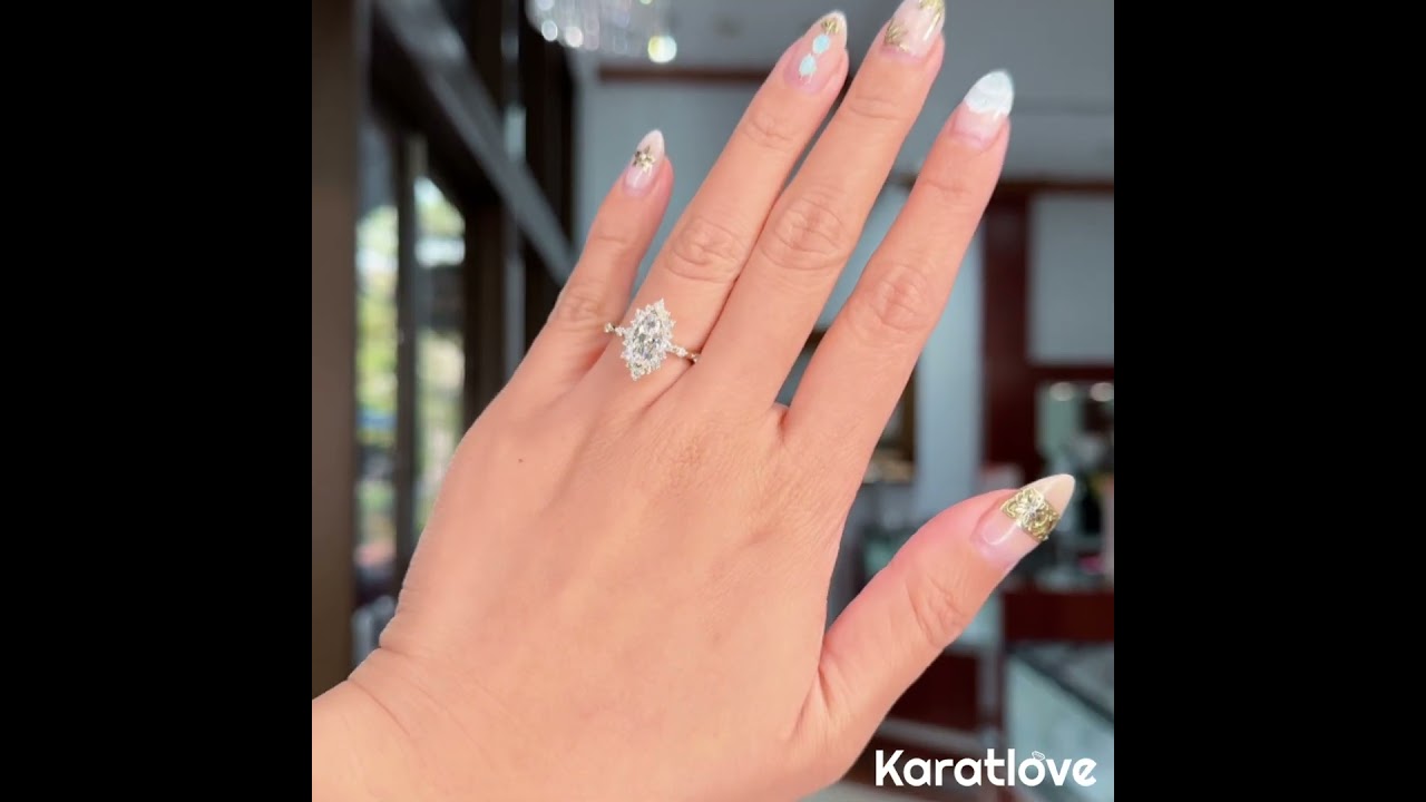 Marquise geslepen diamant witte sterling zilveren gele gouden halo verlovingsring