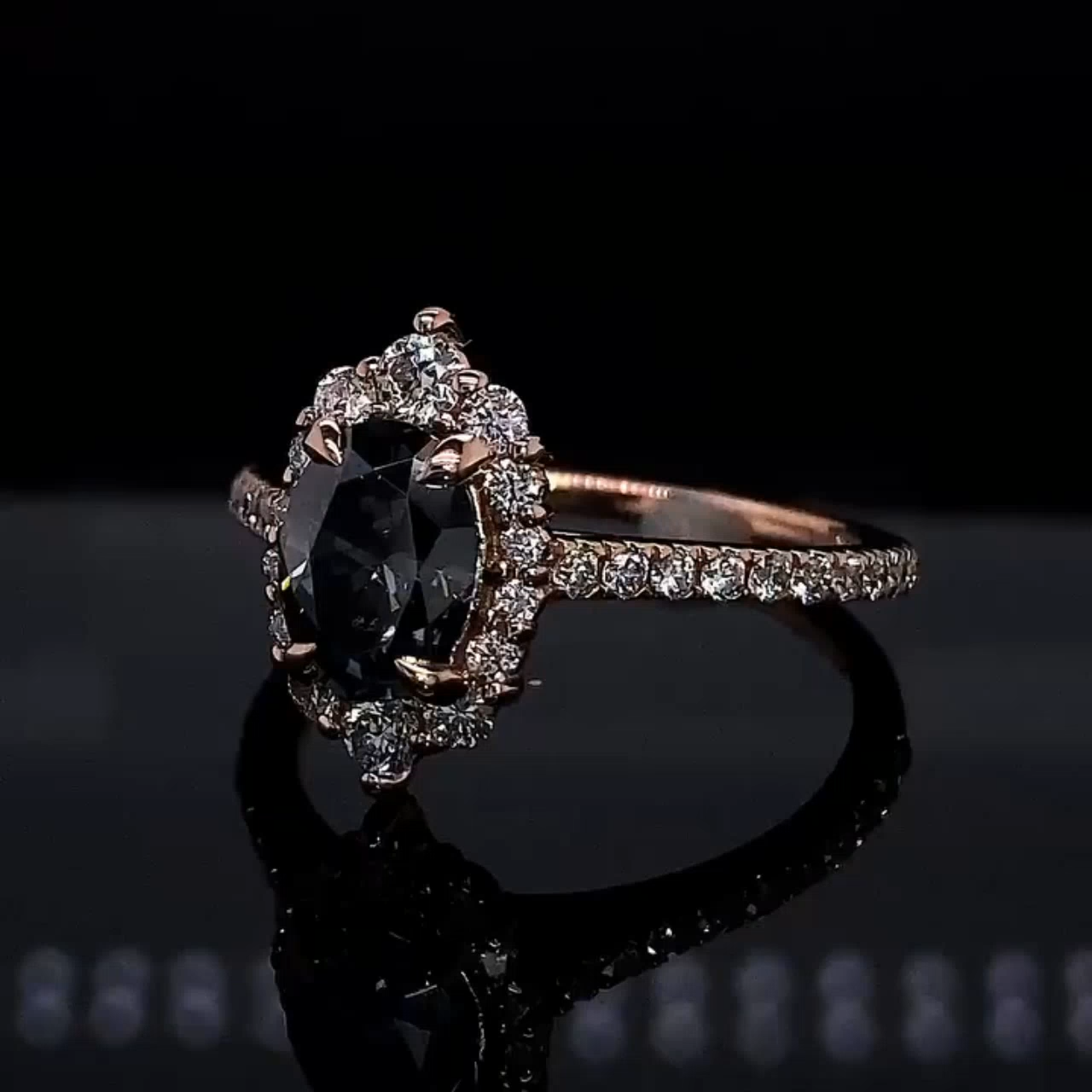 Ovale geslepen fancy zwarte rozen gouden halo verlovingsring in 925 sterling zilver