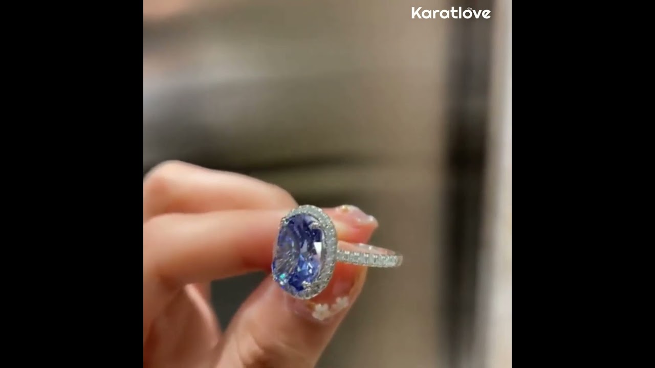 Ovale geslepen saffierblauwe sterling zilveren halo verlovingsring
