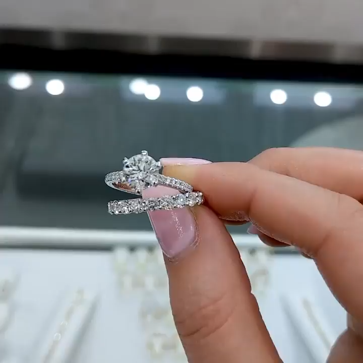 Ronde geslepen diamant witte trouwsets in 925 sterling zilver