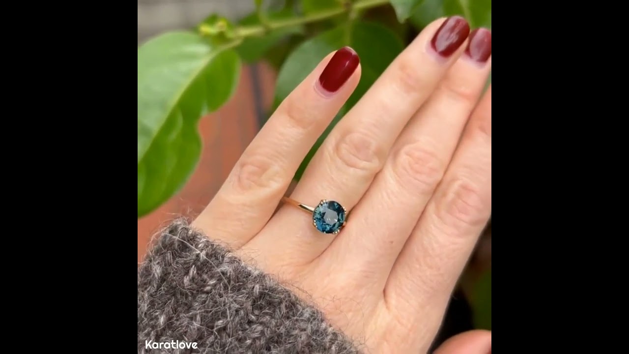 Ronde geslepen saffierblauwe 925 sterling zilveren geelgouden solitair verlovingsring