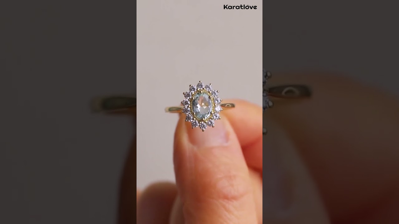 Oval Cut Aquamarine Blue 925 Sterling Silver Yellow Gold Halo Engagement Ring