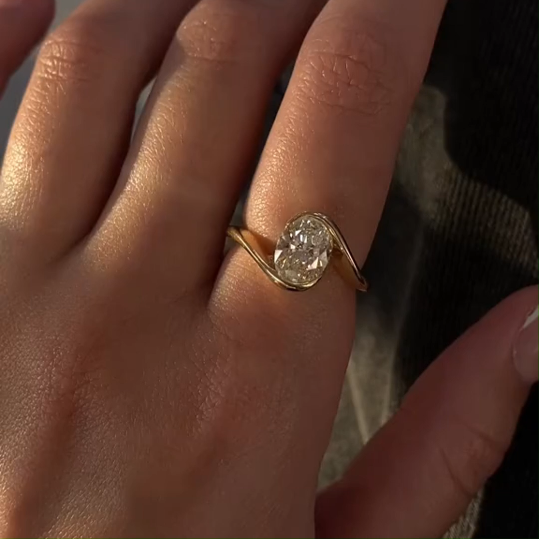 Oval Cut Diamond White 925 Sterling Silver Yellow Gold Solitaire Engagement Ring