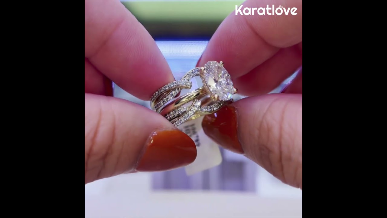 Oval Cut Diamond White Sterling Silver Yellow Gold Enhancer Bridal Ring Sets