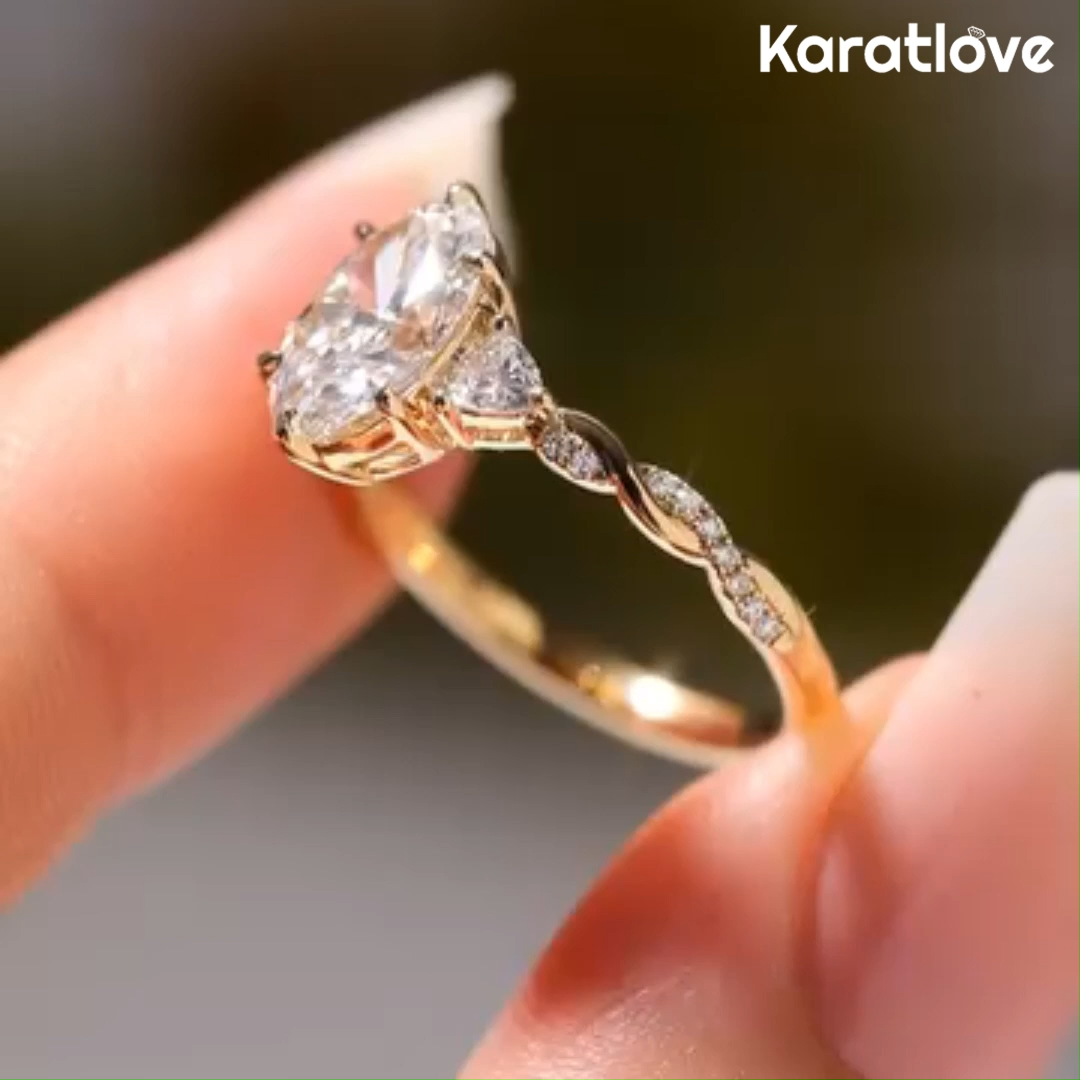 Oval Cut Diamond White Yellow Gold Sterling Silver Intertwined 3-Stone Engagement Ring