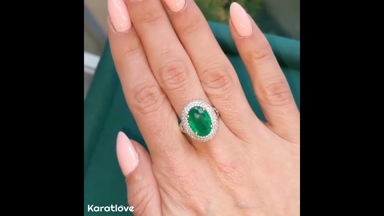 Oval Cut Emerald Green 925 Sterling Silver Halo Engagement Ring
