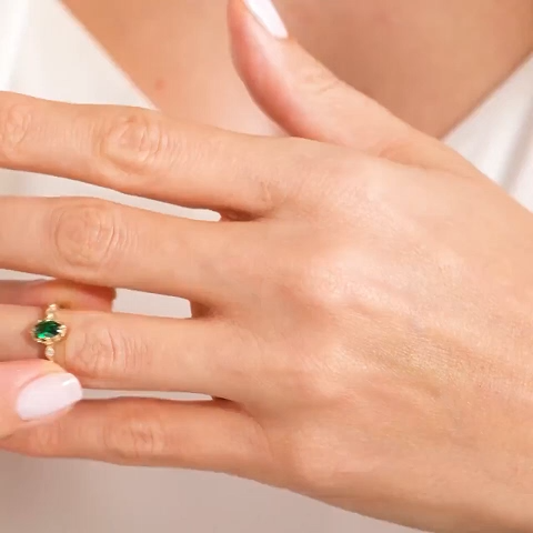 Oval Cut Emerald Green Sterling Silver Yellow Gold Engagement Ring