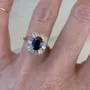 • Oval Cut Fancy Black 925 Sterling Silver Yellow Gold Halo Art Deco Engagement Ring