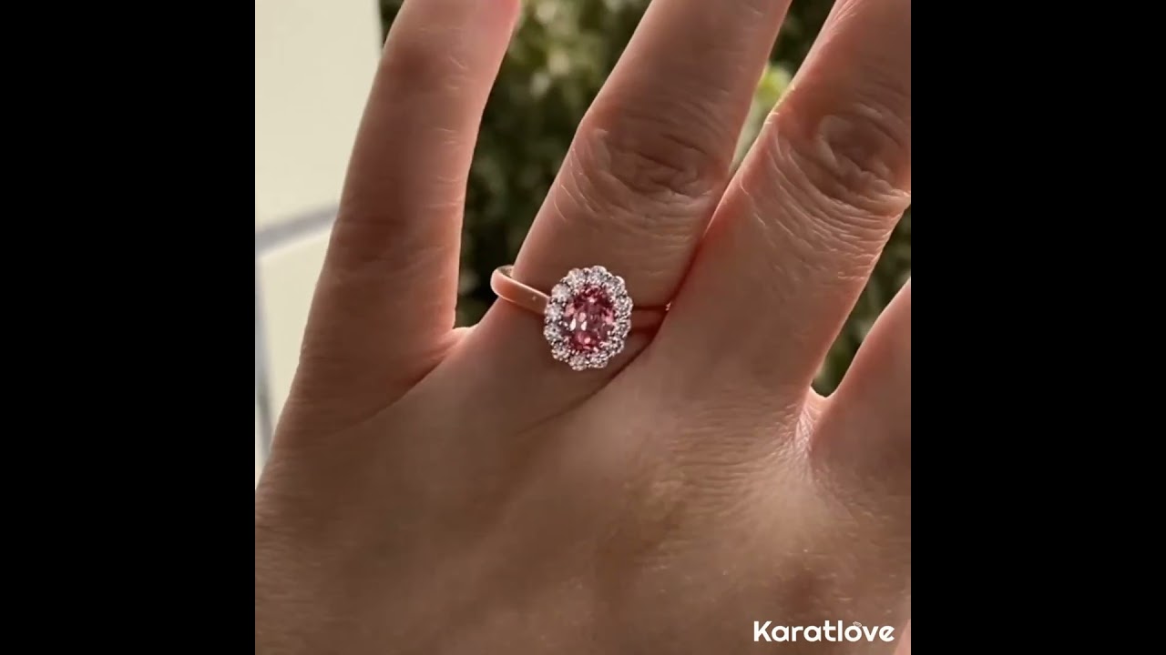 Oval Cut Fancy Pink 925 Sterling Silver Rose Gold Halo Engagement Ring