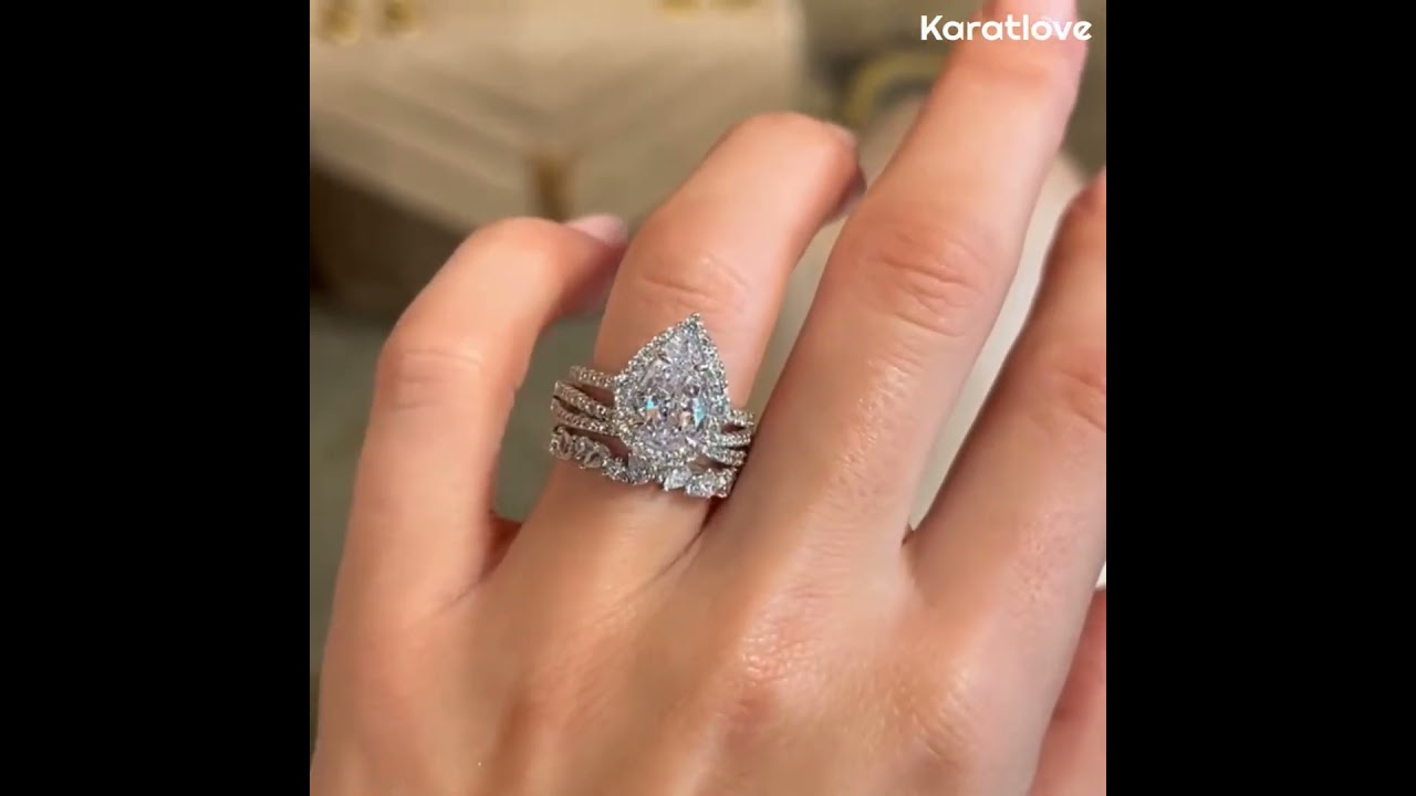 Pear Cut Diamond White Halo 3-Piece 925 Sterling Silver Ring Set