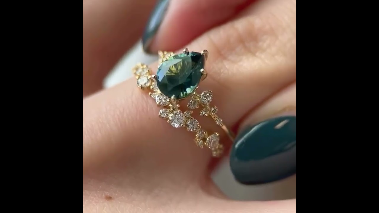 Pear Cut Emerald Green Sterling Silver Yellow Gold Bridal Sets