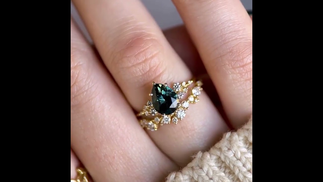 Pear Cut Emerald Green Sterling Silver Yellow Gold Bridal Sets
