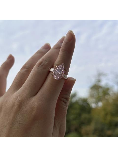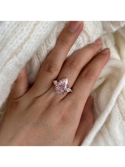 • Pear Cut Fancy Pink Sterling Silver Rose Gold 3-Stone Engagement Ring