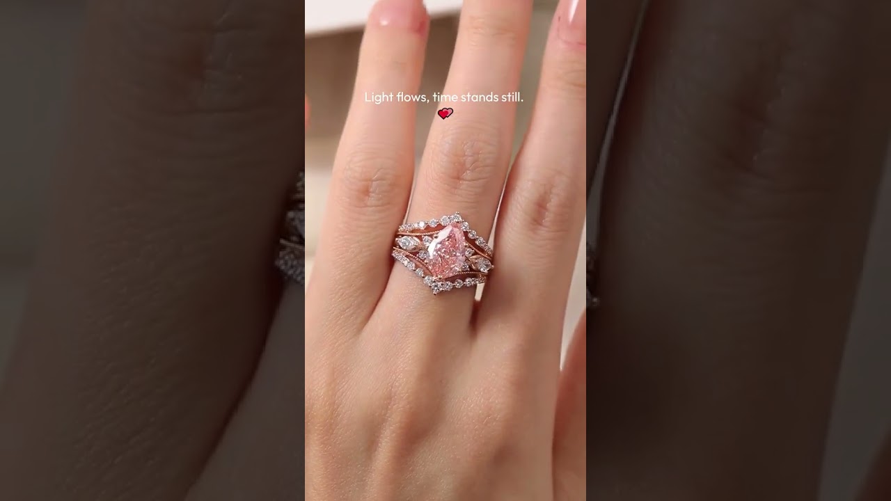 Pear Cut Fancy Pink Sterling Silver Rose Gold Enhancer Bridal Ring Sets