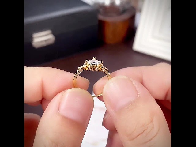 Princess Cut Diamond White Sterling Silver Yellow Gold Engagement Ring