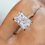 • Radiant Cut Diamond White 925 Sterling Silver Yellow Gold Hidden Halo Engagement Ring