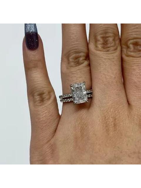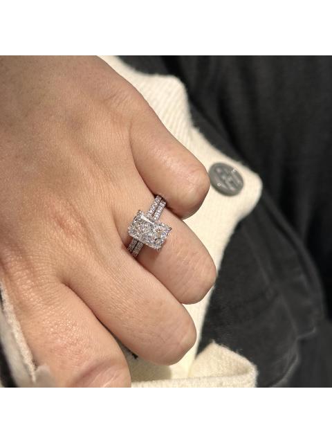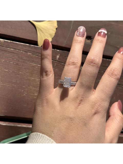 • Radiant Cut Diamond White Sterling Silver Halo Ring Set