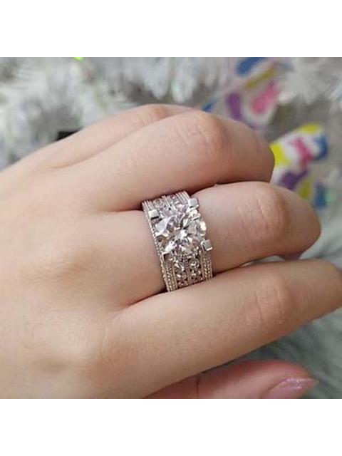 Diamond White Round Cut Sterling Silver Art Deco Engagement Ring