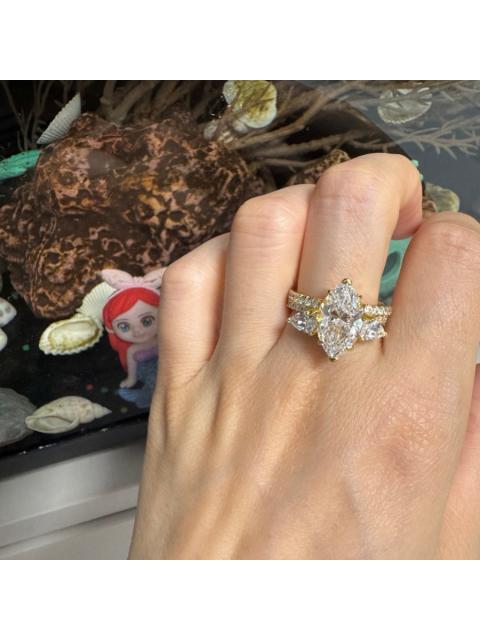 • Marquise Cut Diamond White Sterling Silver Yellow Gold Insert Wedding Ring Set