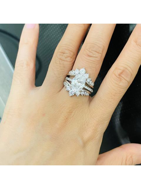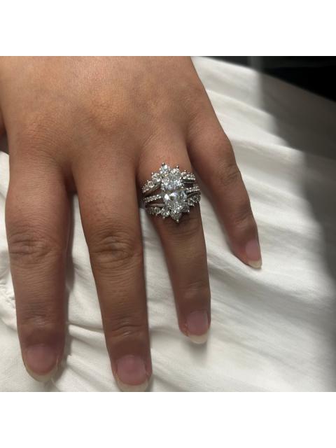 • Oval Cut Diamond White Sterling Silver Insert Wedding Ring Set