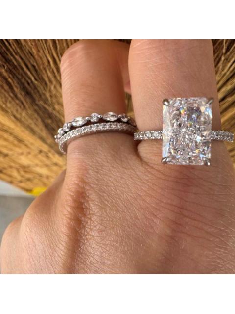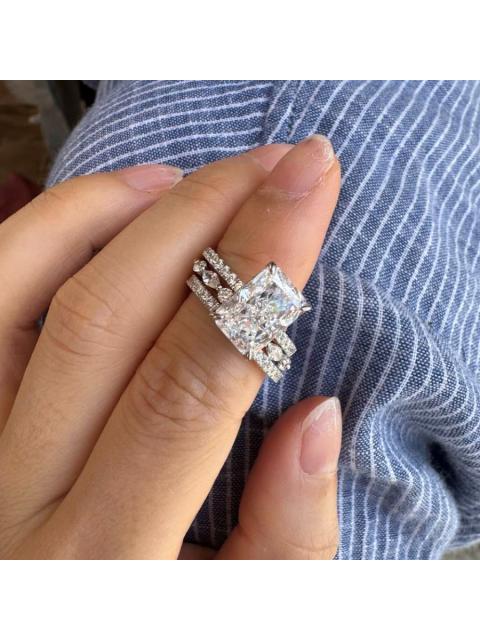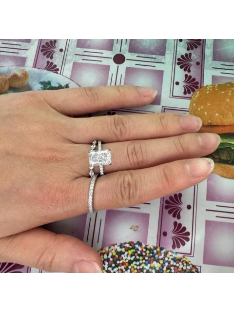 • Radiant Cut Diamond White Sterling Silver Available in 3 Colours 3-Piece Wedding Ring Set