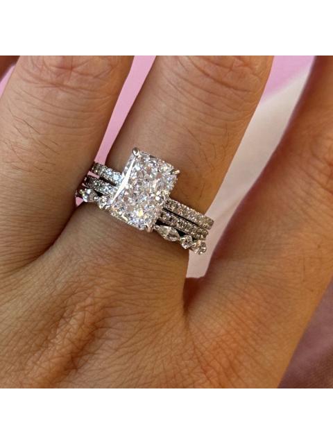 Radiant Cut Diamond White Sterling Silver Available in 3 Colours 3-Piece Wedding Ring Set