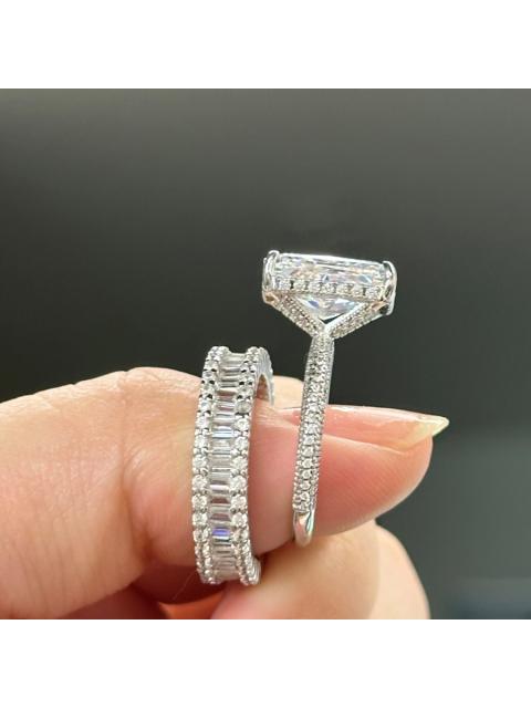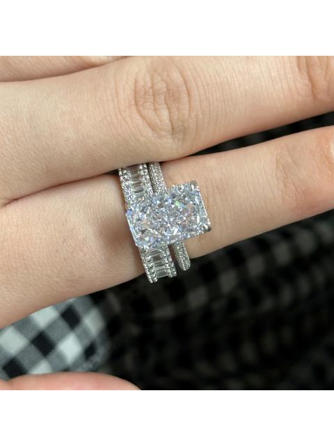 Radiant Cut Diamond White Sterling Silver Available in 3 Colours Wedding Ring Set