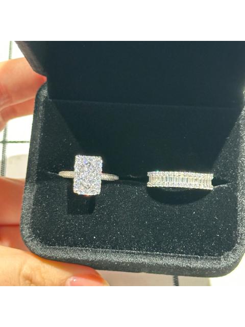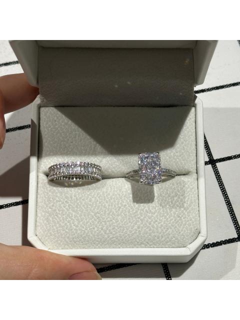 • Radiant Cut Diamond White Sterling Silver Available in 3 Colours Wedding Ring Set